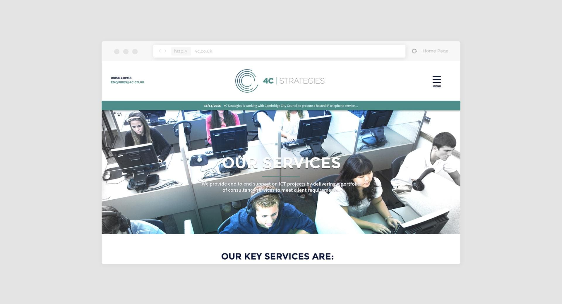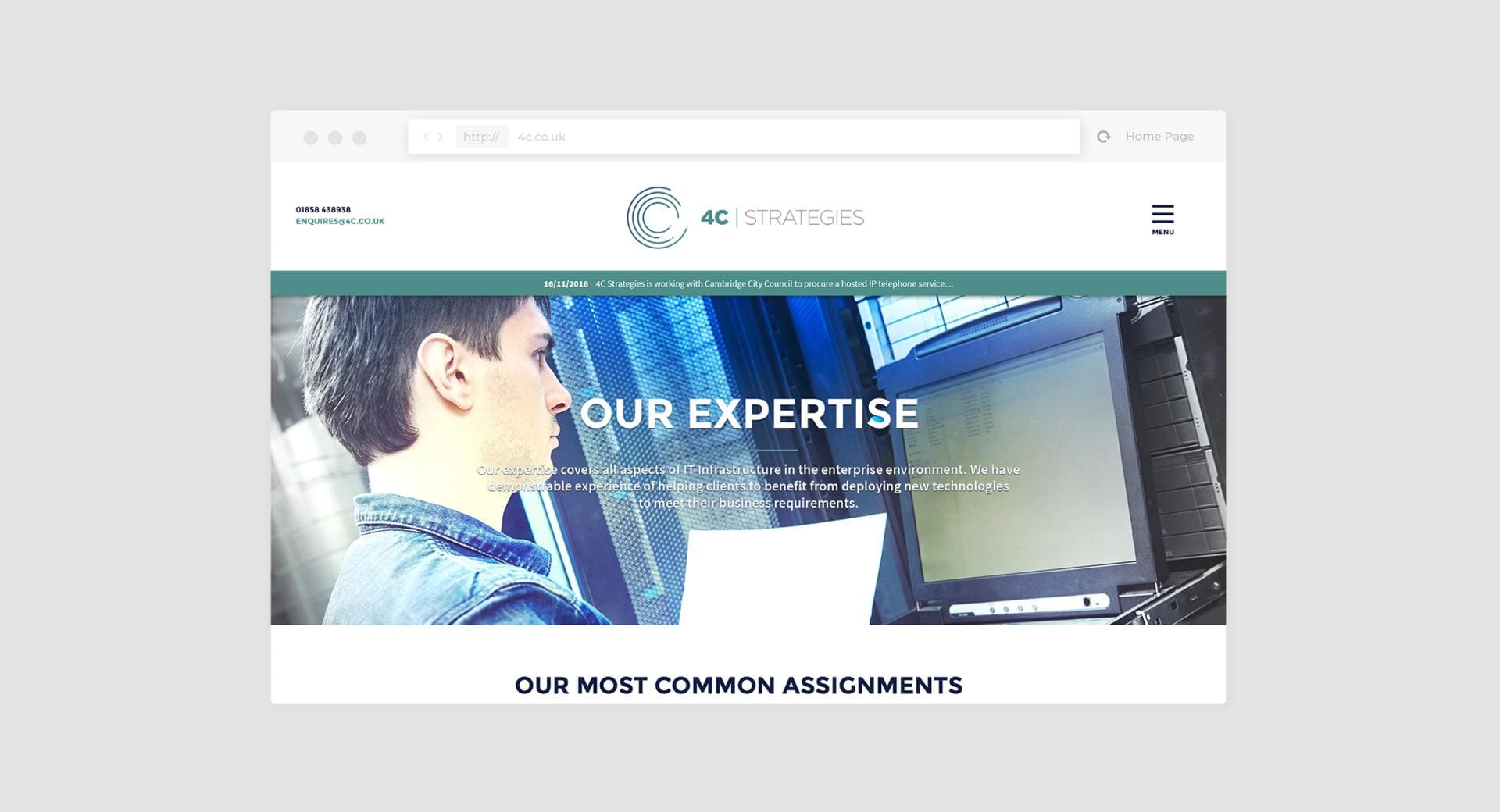 4c specialise in being independent experts in IT technology and infrastructure projects, particularly for higher education and other public sectors. The client required a complete brand refresh, new marketing strategy and a redeveloped website that could serve as both a gateway to their business and a presentation tool.